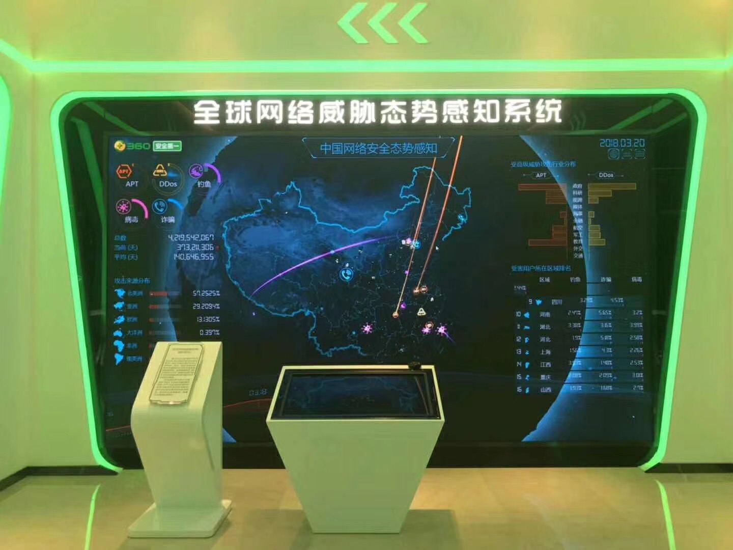 福建南平360網絡威脅態勢感知系統1.667顯示屏